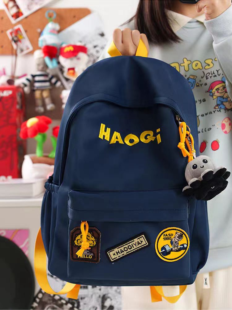 美式复古书包初中大学生大容量简约轻便双肩包男补课宽肩带背包女