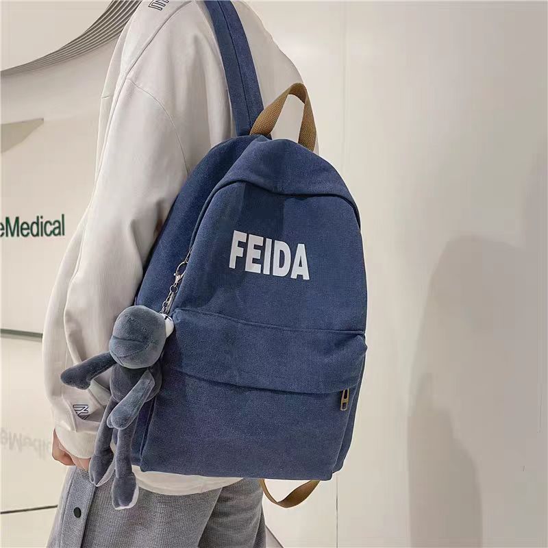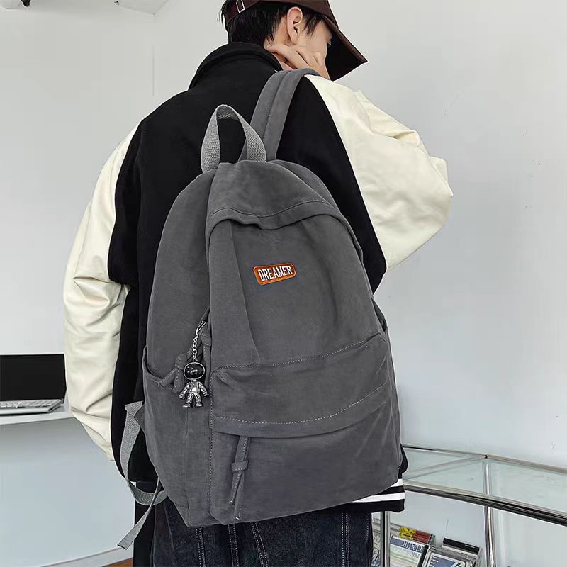书包男港风文艺简约潮牌帆布包高中学生大学生双肩包日系纯色休闲