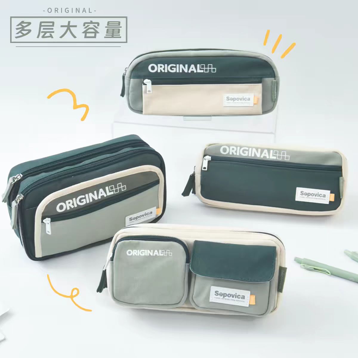 多层大容量造型拼接多功能笔袋简约设计纯色ins中小学生文具袋