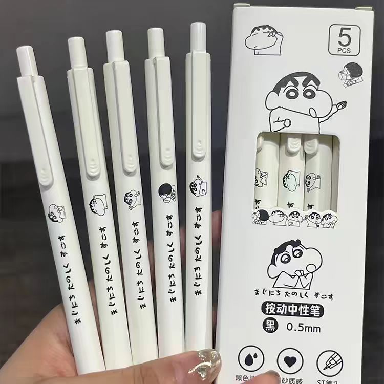 la笔小新按动中性笔学生高颜值刷题笔可爱少女心卡通碳素黑笔